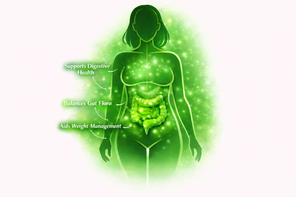 Supports a balanced gut microbiome, which is essential for proper digestion and nutrient absorption.
